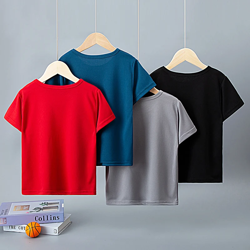 Buy 1/4 Pack Children’s Summer Quick-drying Sports Short Sleeve Solid Color Joker Casual Plus Size Shirt Boys And Girls Running T-sh