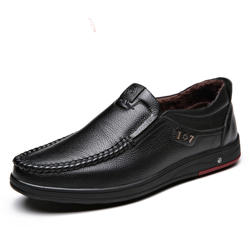 2020 New Winter Men’s Genuine Leather Shoes Head Leather Soft Winter Plush Warm Leather Shoes