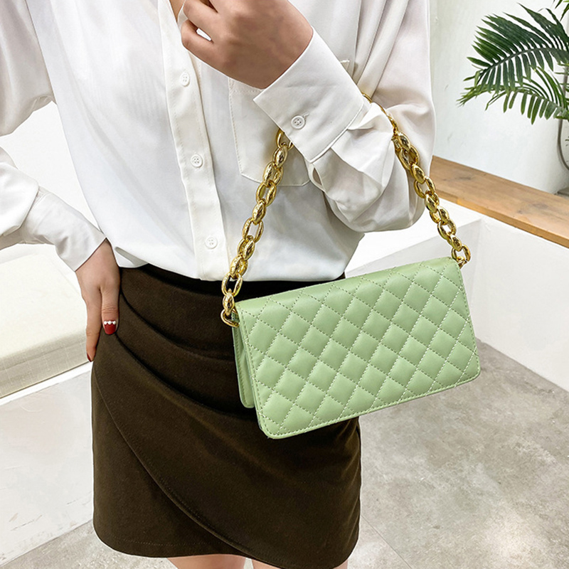 2022 Arrival Underarm Shoulder Bags For Women Fashion Plaid PU Leather Handbag Purse Chains Armpit Bag Clutch Female Mochila