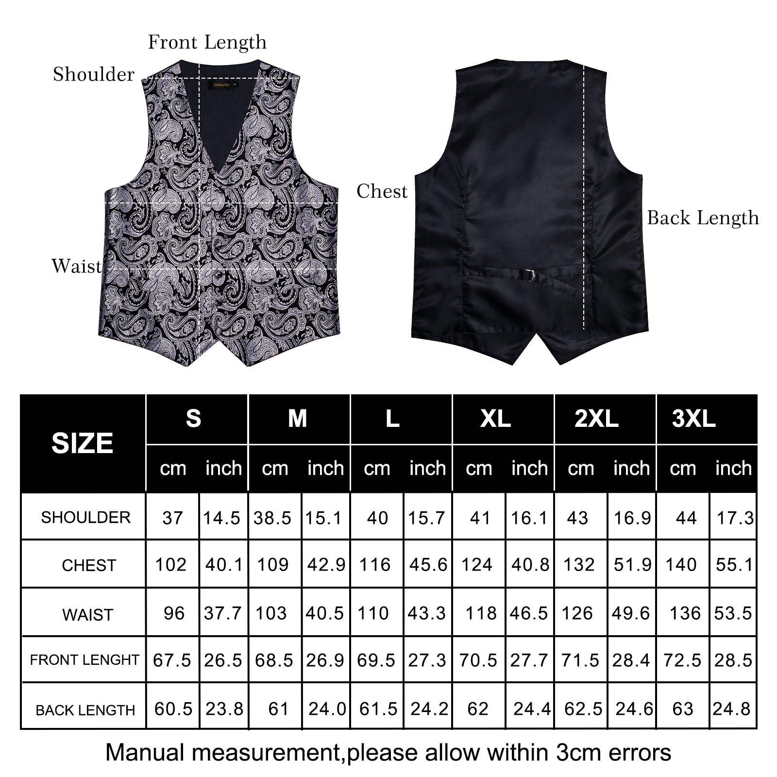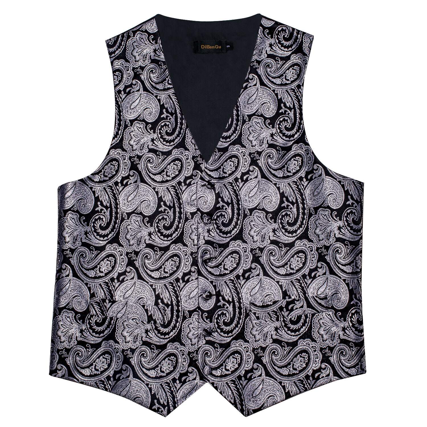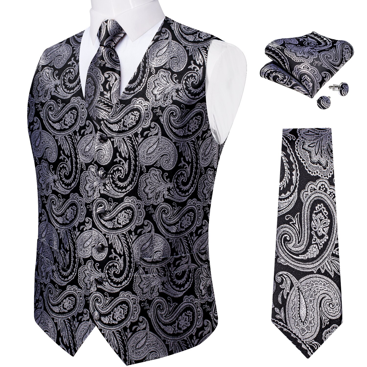 Luxury Black Paisley Silk Suit Vest for Men Bow Tie Handkerchief Cufflinks Wedding Party Formal Tuxedo Waistcoat