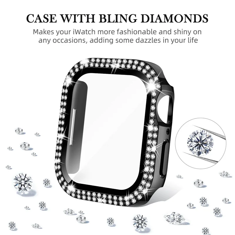Diamond Cover For Apple watch accessories 45mm 41 40 44mm Tempered Glass case Bumper Screen Protector iWatch series 9 8 7 6 5 SE