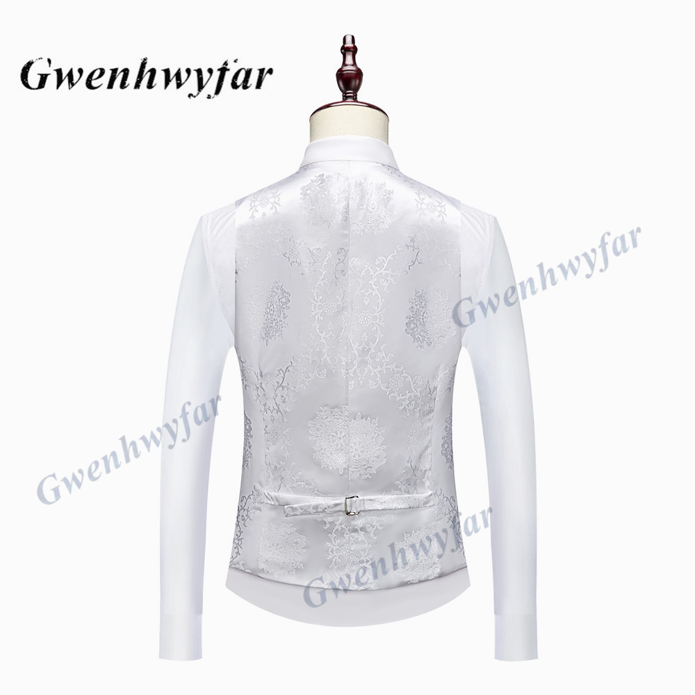 Gwenhwyfar High Quality Men Wedding Tuxedos 2022 Mist Pink Peak Lapel Men Blazer Trousers Waistcoat in White Pattern Material