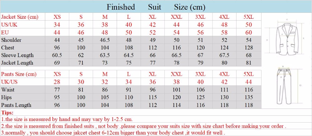 (please choose the right size according to your own case, which is very important for us to make the suits for you.)
