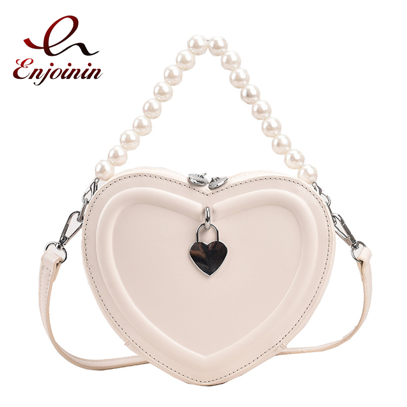 Heart Shaped Pearl Chain Purses and Handbags for Women Designer Ladies Shoulder Bag Party Clutch Fashion Crossbody Bag Leather