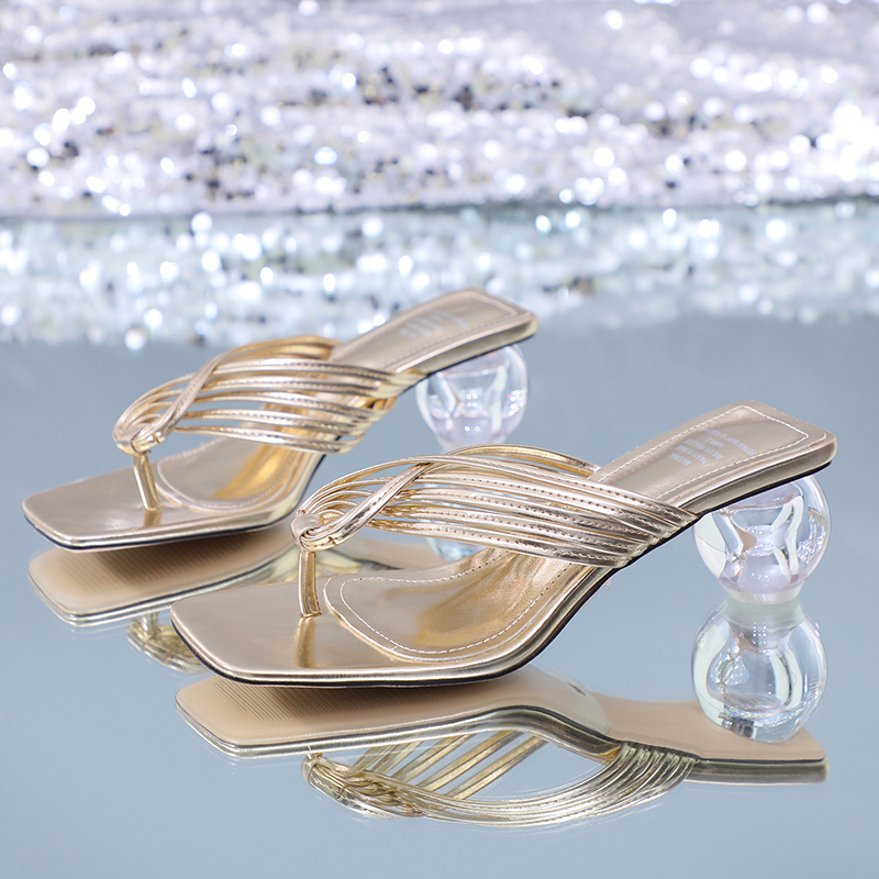 Large size sandals women 2021 summer new style European and American flip flops fashion transparent crystal high-heeled sandals