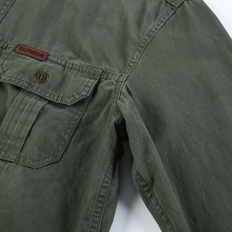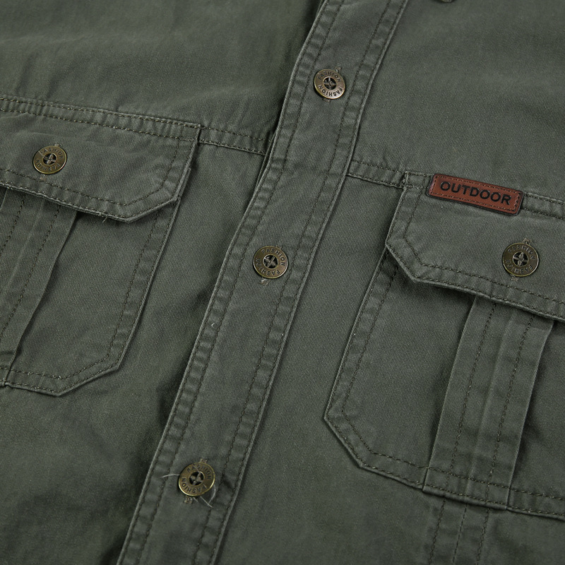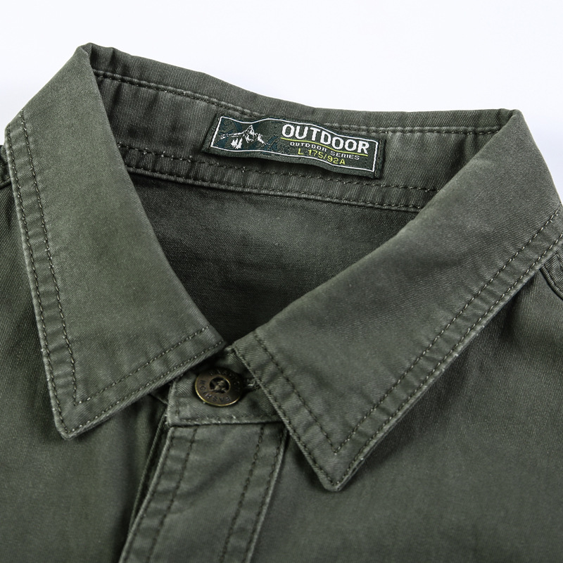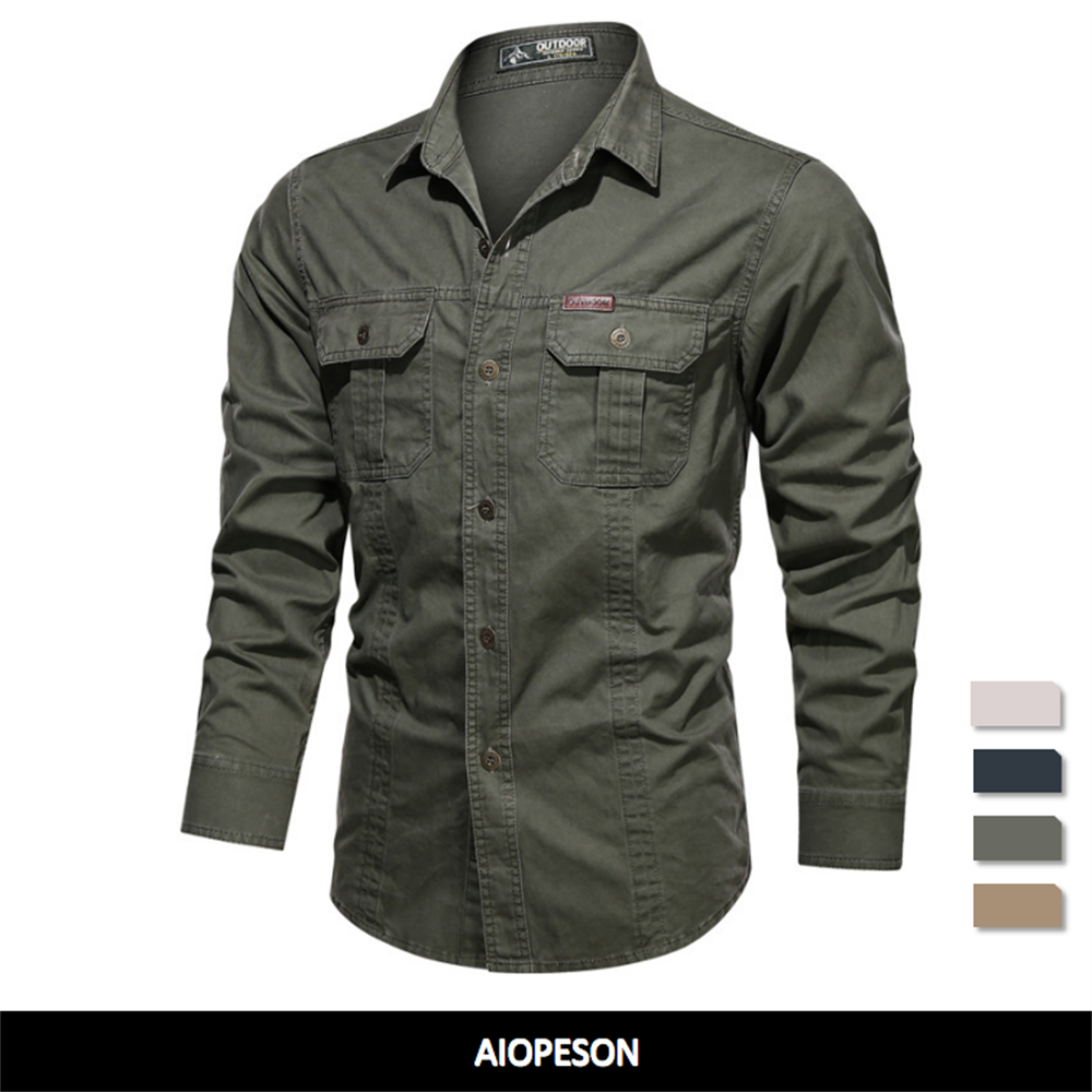 New 2021 Casual 100% Cotton Men’s Shirts Solid Color Stand Collar Pocket Button Up Shirts for Men Fashion Long Sleeve Shirts Men