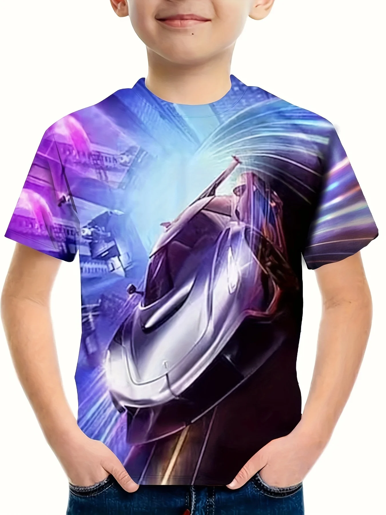 Stylish Racing Car Graphic T Shirt Crew Neck Junior Boys’ Summer Clothing Short Sleeve T-Shirts Casual Children Top Boys Clothes