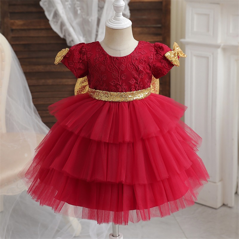 Toddler Girl Big Bow Princess Dress 1st Birthday Party Ball Gown Christmas Red Dress for Kids Girl Wedding Cake Tulle Dress 1-5Y